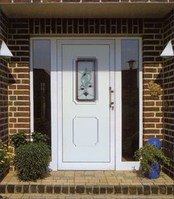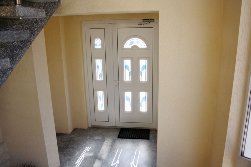 Вхідні двері ПВХ на сходову клітину вигляд ззовні
