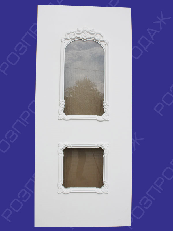 Сендвич панель: Янтар-Я02 (белый). Стекло - полимерный витраж/2. Розмеры - 880*2050 мм.