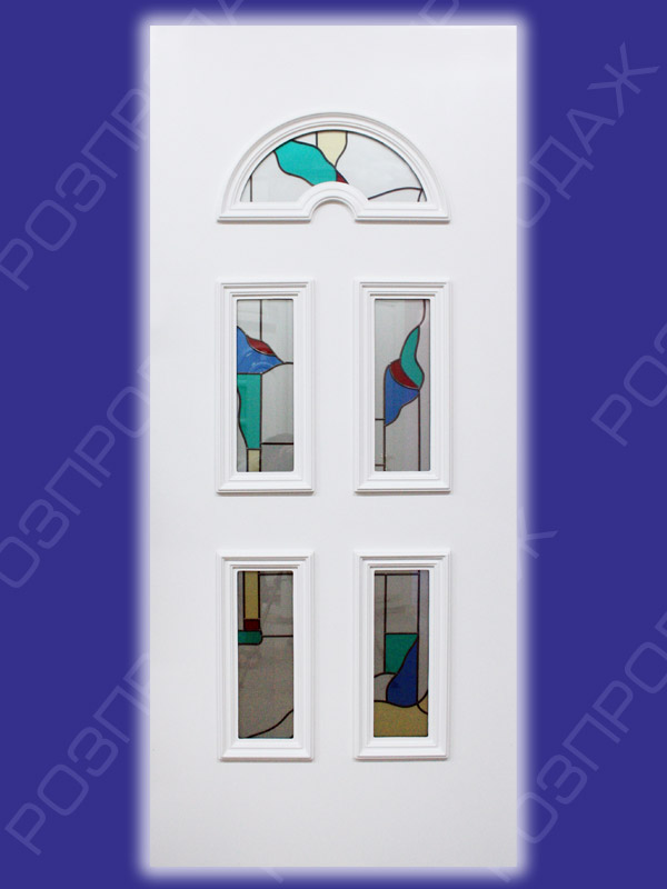 Сендвич панель: Топаз Т-01 (белый). Стекло - витраж-1. Розмеры - 880*2050 мм.