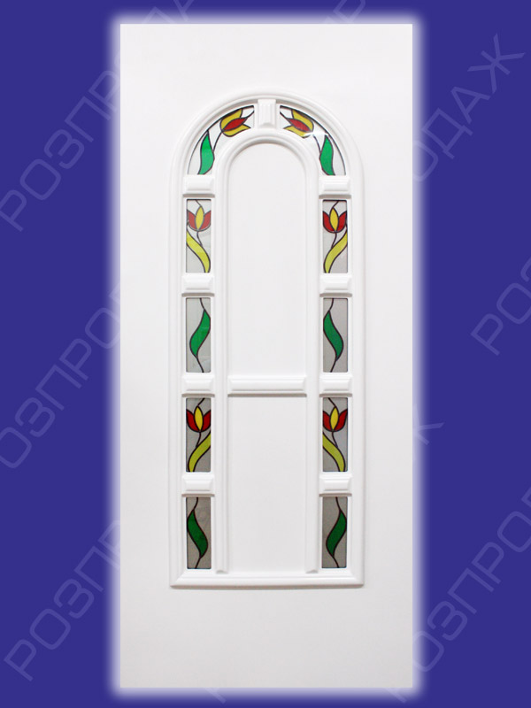 Сендвич панель: Топаз Т-02 (белый). Стекло - витраж-1. Розмеры - 880*2050 мм.